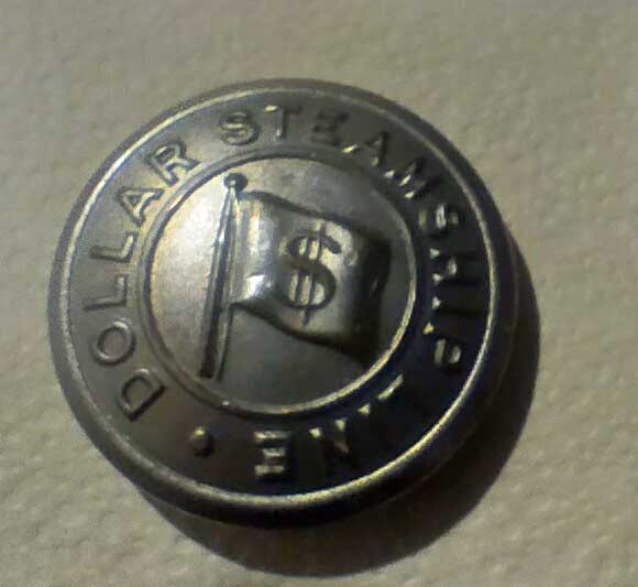 A rare "first day" envelope celebrating the maiden voyage of the the SS President Coolidge I purchased this on eBay in November 2008 | A button from the uniform of the crews of Dollar Steamship Line I purchased this on eBay many years ago |