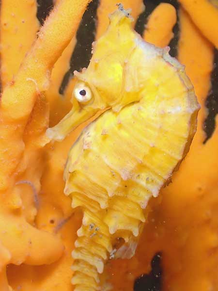 This yellow sea horse is on the same rock as the one above right. Seen from November to December 2023 | The same one as at left |
